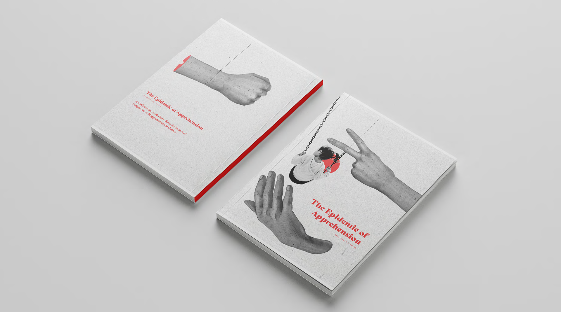 It was very important to me that this project encompassed the underlying systemic racism showcased by the residential schools, is still very much alive today. It uses photography and language that we're all accustomed to seeing everyday, and gives them a new perspective. Using relatable language and nostalgic imagery, this book re-contextualizes the epidemic of Indigenous child apprehension within the Covid-19 pandemic, and triggers connections to the childhood of the reader in contrast to the loss of youth written about in the book. Using language related to Covid-19 news headlines was intentional because it aims to convey the present day relevance of systemic racism. It does not attempt to compare the severity of one tragedy to the other.